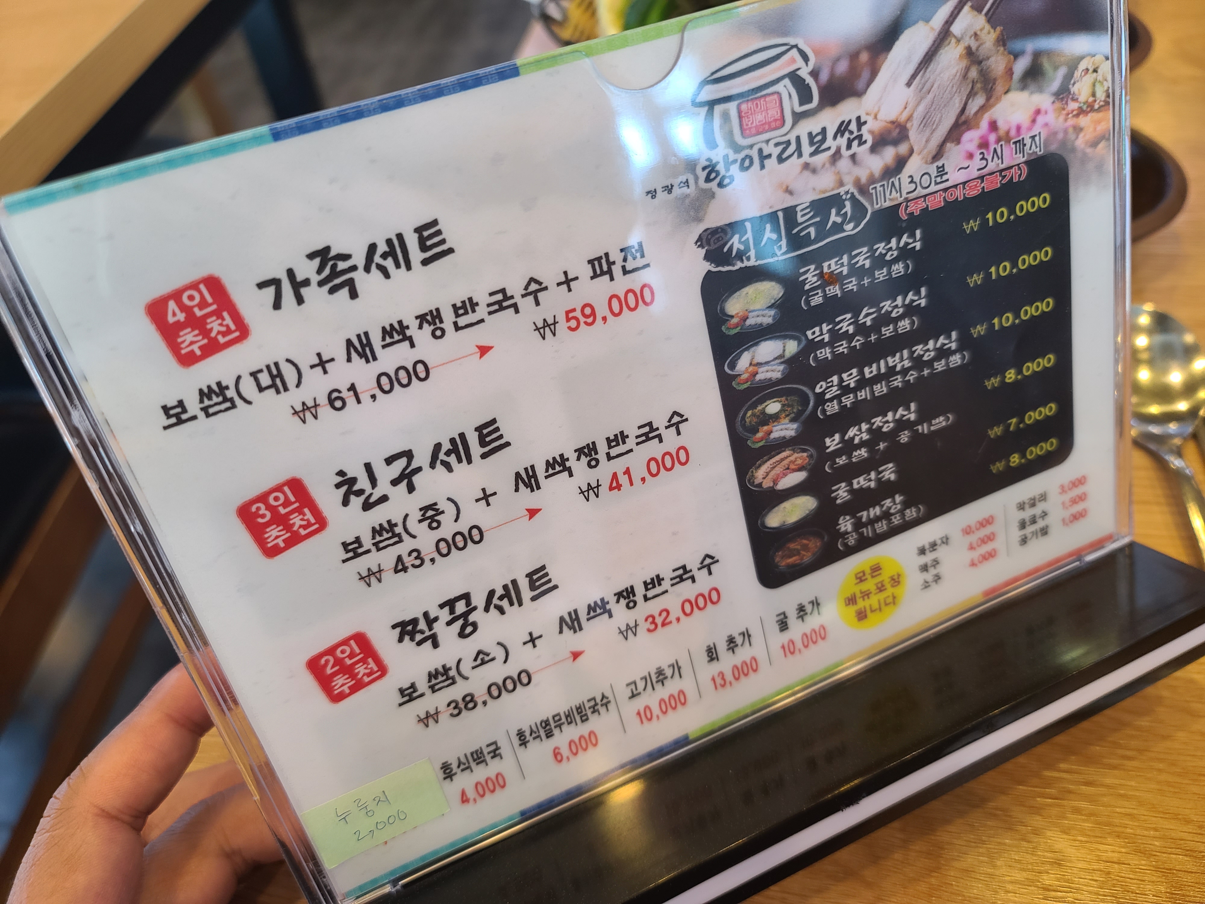 굴떡국정식(굴떡국 + 보쌈) : 10,000원