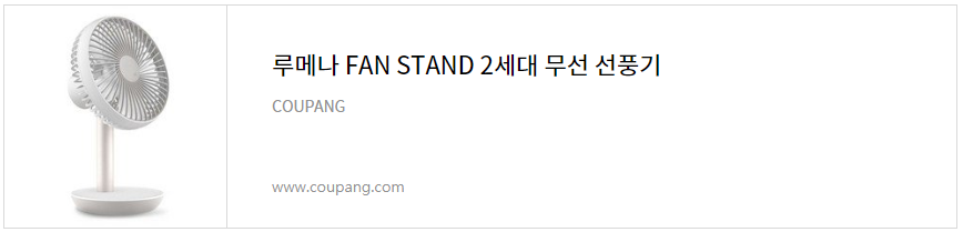 지금 소개해드릴 루메나 선풍기는 탁상용 선풍기 크기에 충전식이라 여름철 캠핑 시 야외에서 사용하기 딱 좋은 아이템이죠