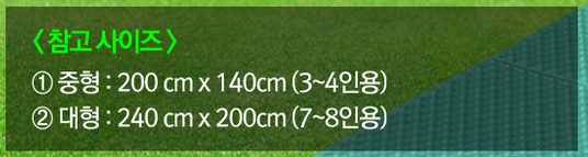 사이즈는 두 가지가 있으며 탠트 사이즈에 맞게 구매하시면 된다.