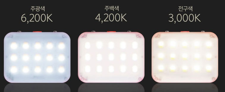 또한, 조명의 색상 또한 주광색, 주백색, 전구색으로 3가지 색온도를 내맘대로 설정할 수 있다.
