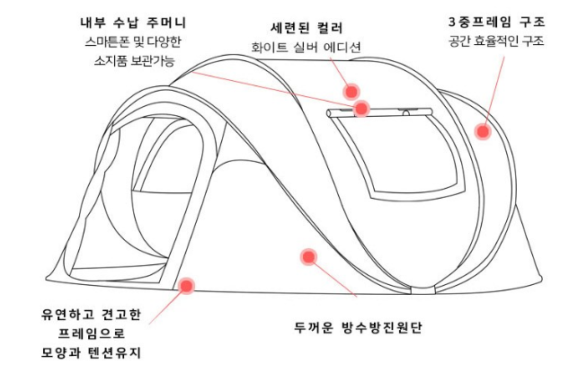 또, 원터치 탠트 답지않게 입구 쪽에 어닝을 달수 있어 아래 사진처럼 어닝 설치하면 미니 타프처럼 그늘도 생기지 얼마나 좋아? 그자?