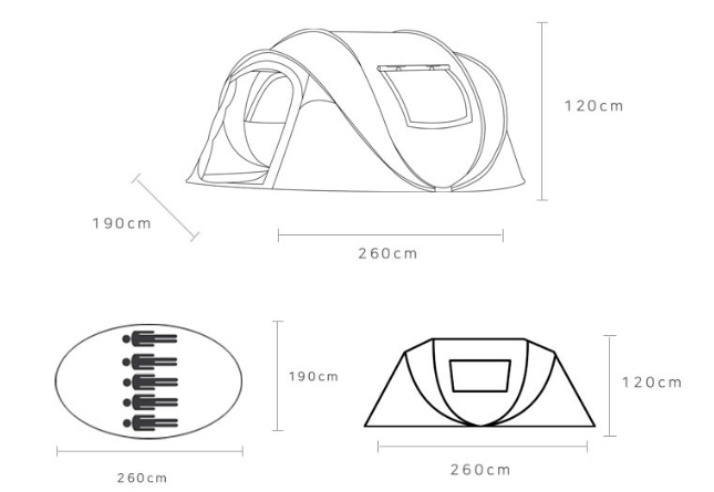 텐트 사이즈는 아래 사진 보면 되 성인 남성 4명정도는 거뜬이 커버할수 있는 크기야