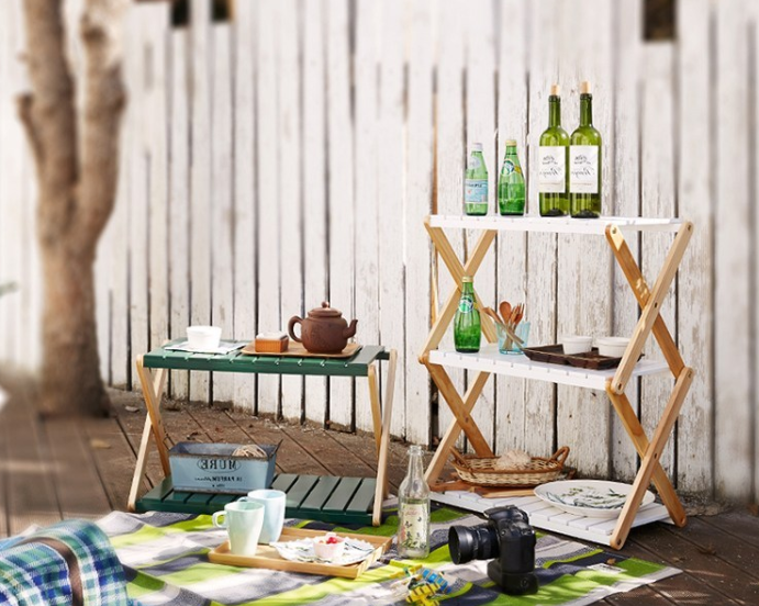 블루밍홈 원목 접이식 수납 선반 2단 3단 4단 캠핑 다용도 화분