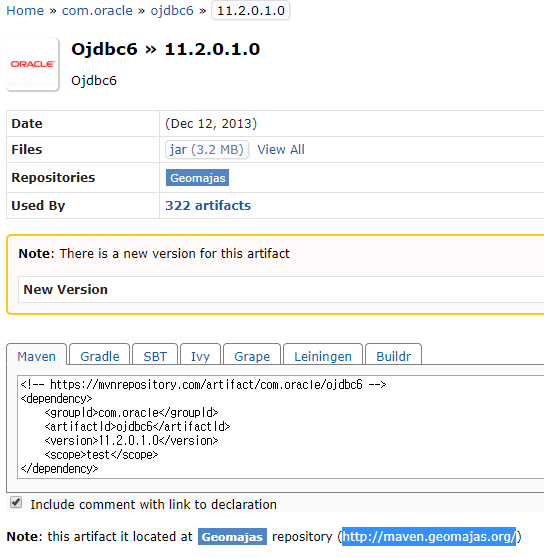 해당 경로를 복사 후 pom.xml에서 오라클 레파지토리를 추가 또는 수정해준다.