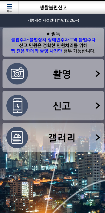 상단에 불법 추자, 불법 정차 등 여러 메뉴가 있는데