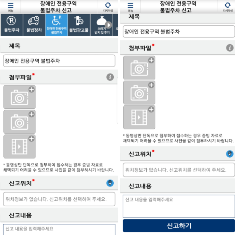 장애인 전용구 차 구역에 불법주차 시 신고하는 방법과