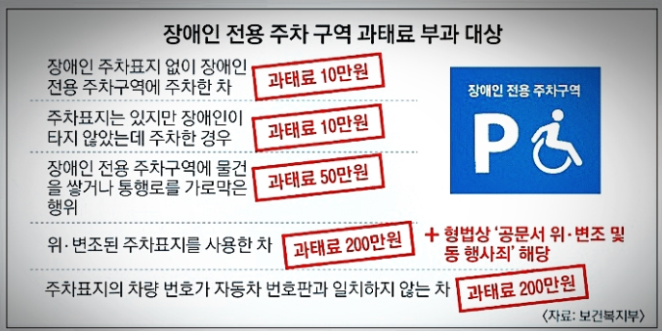 하지만 장애인 전용 주차구역에 물건을 쌓거나