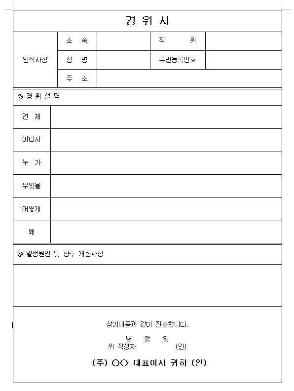 우리는 직장생활을 하면서 경위서나 경위서를 써야 하는 경우가 생길 수 있다