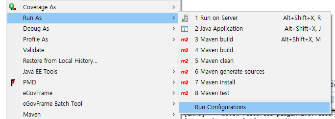 프로젝트명 우클릭 후 Run As > Run Configurations.. 선택