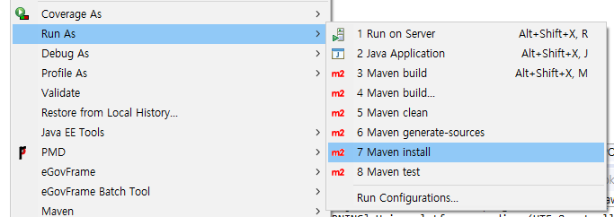 설정이 끝났으면 다시 Run As > Maven Install로 빌드가 성공 했는지 확인한다.