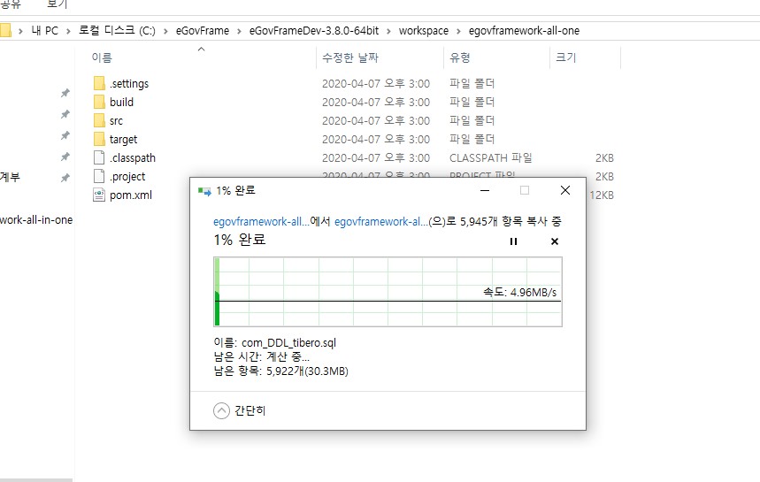그리고 eGovFrame에서 Web Project를 생성하는대 아래와 같이.. 10분째 멈춰있다..