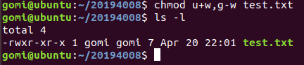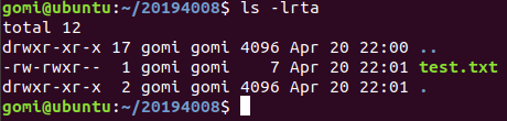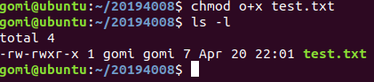 -rw-rwxr-- 1 gomi gomi 7 Apr 20 22:01 test.txt