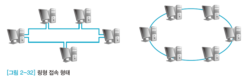 ㅇ 모든 컴퓨터를 하나의 링으로 연결된다.
