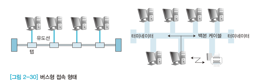 ㅇ 모든 네트워크 노드, 주변장치가 일자형 케이블로 연결되어 있는 형태