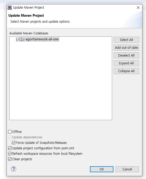 프로젝트 우클릭 -> Maven -> Update Project 선택