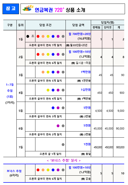 * 상품 설계상 당첨자 숫자가 고정되어 보너스 방식을 통해 연금당첨자를 확대함