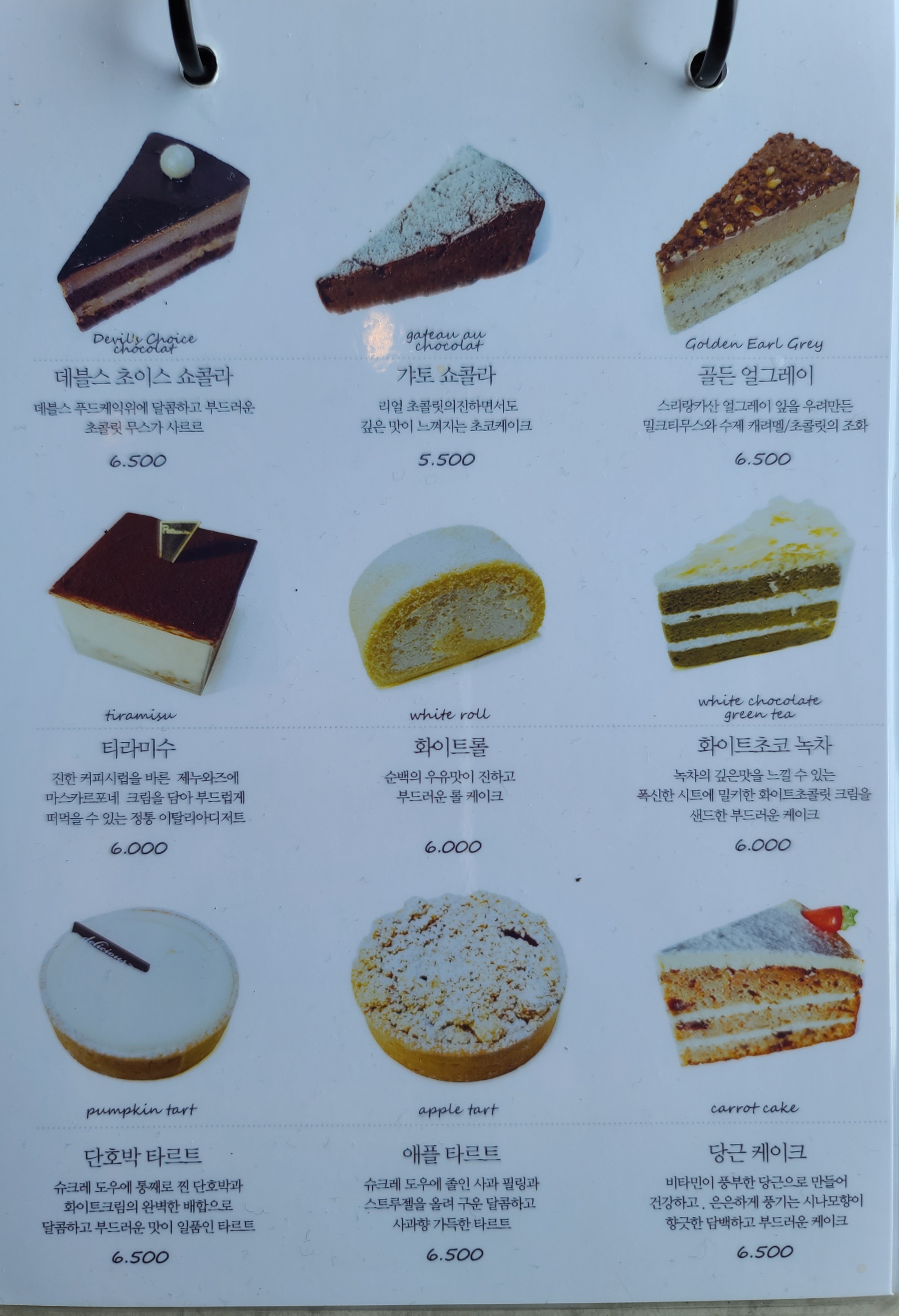자리에 앉으니 작은 메뉴판이 있다. 커피 이외에 머핀이나 케익 메뉴들도 있다.