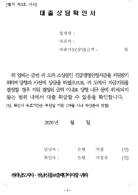마. 자금추천신청서는 전남도청 또는 전남신용보증재단 홈페이지에서 신청서식을 다운 받아 활용할 수 있음.