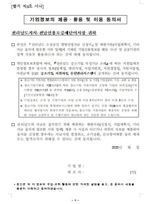 가. 공고 내용 이외의 사항은 전라남도 중소기업 육성기금 조례, 동 시행규칙, 2020년도 전라남도 소상공인 긴급경영안정자금 지원계획에 의하며, 접수된 서류는 반환하지 않음.
