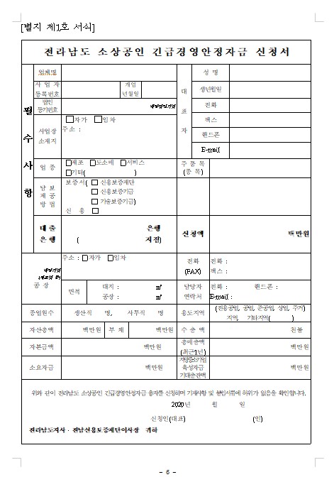 「코로나19 피해 전라남도 소상공인 긴급경영안정자금」 지원 계획 변경 공고