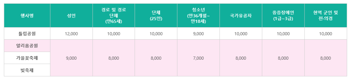 성인 : 9,000원 / 단체 및 경로 : 8,000원 / 청소년 : 7,000원